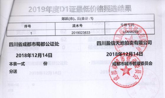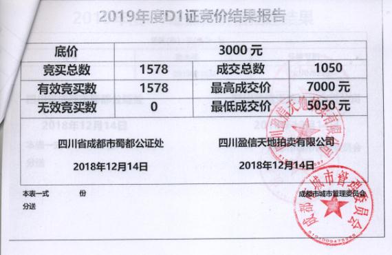2019年度成都市“貨運汽車城區(qū)道路使用權(quán)”公開競價結(jié)果公告