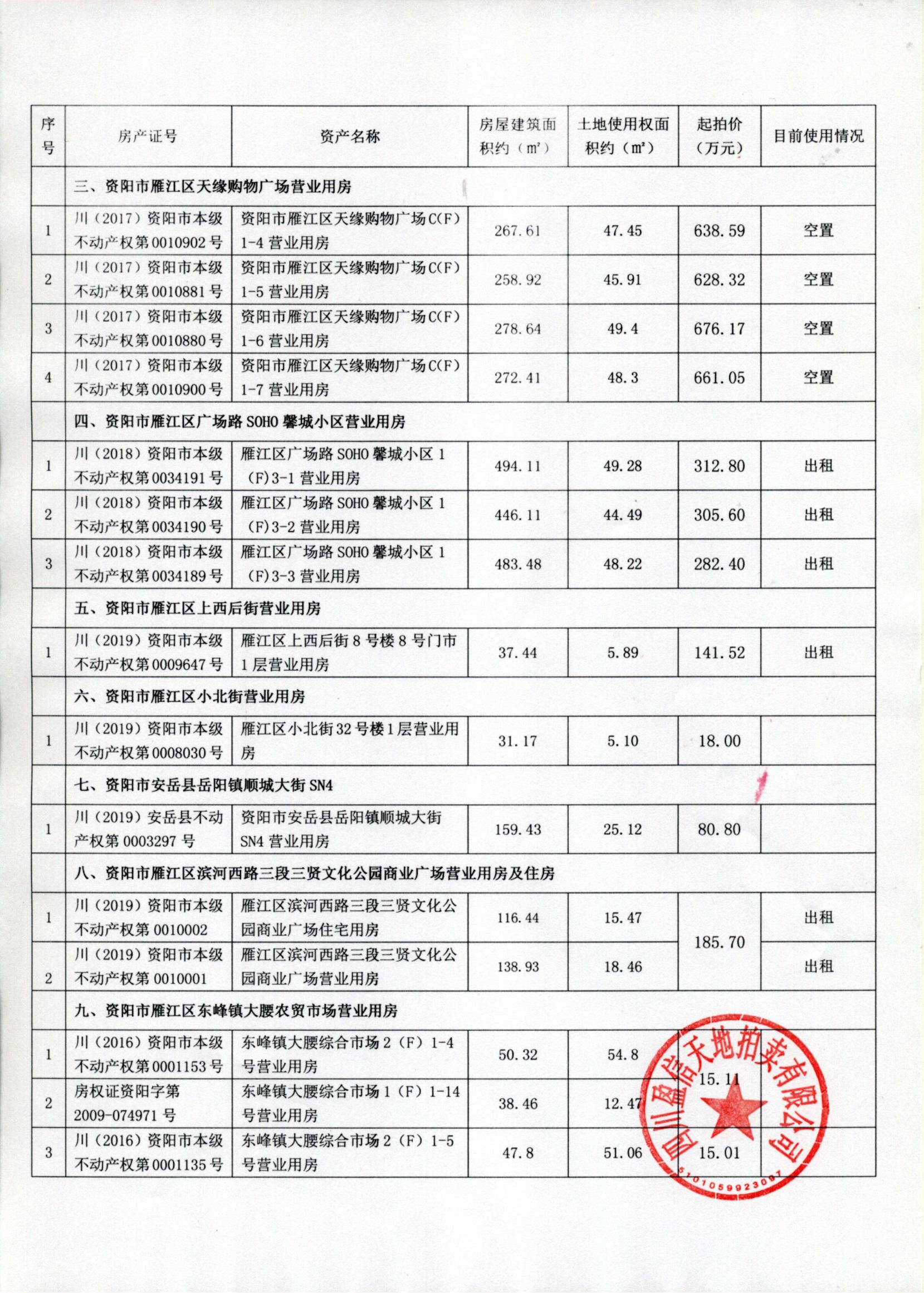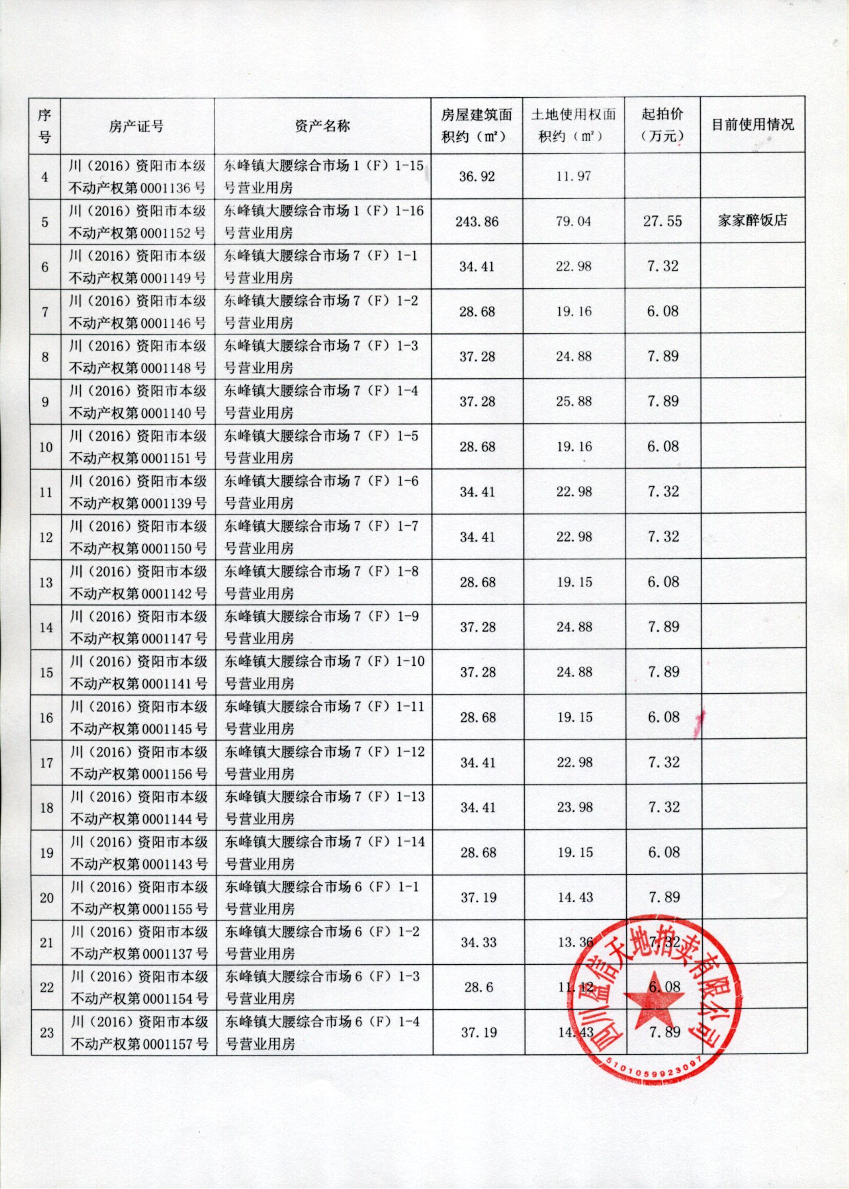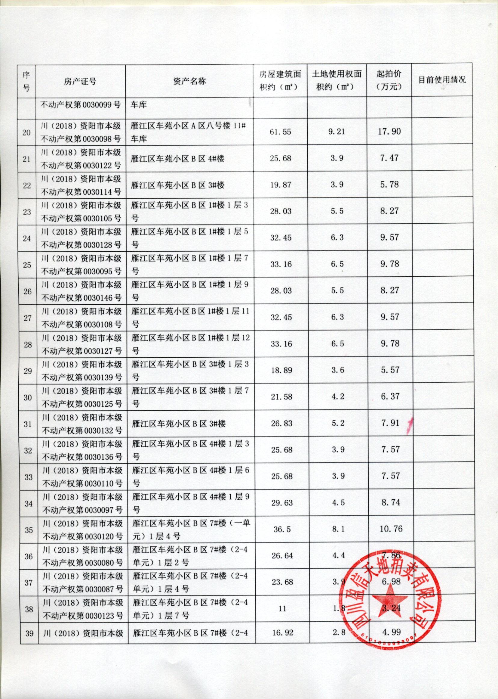 二、競買資格:標的一至標的九中的各標的:中華人民共和國境內外的法人、自然人和其他組織除法律另有規定外均可申請參加競買;標的十的各標的:僅限資陽市雁江區車苑小區的業主本人(單位)競買。