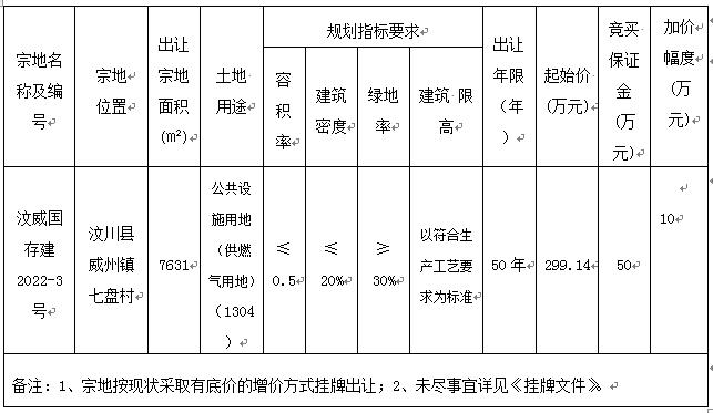 汶威國存建2022—3號地塊掛牌出讓公告